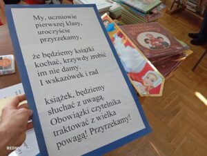 Kulminacyjnym punktem uroczystości było uroczyste złożenie przyrzeczenia czytelnika oraz symboliczne pasowanie. Każde dziecko otrzymało pamiątkowy podarunek.